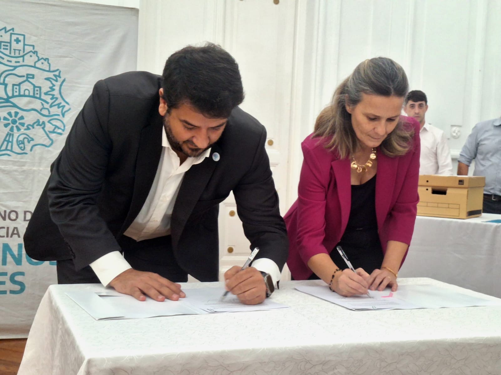 El acto contó además con la presencia del ministro de Justicia y Derechos Humanos de la provincia de Buenos Aires, Juan Martín Mena; acompañado del responsable de la Agencia de Asistencia Técnico-Legislativa, Pablo Barbuto, la directora provincial de Personas Jurídicas, Silvia García y la asesora de la Escribanía General de Gobierno, María Eugenia Doro Urquiza, junto a funcionarios del gabinete municipal.