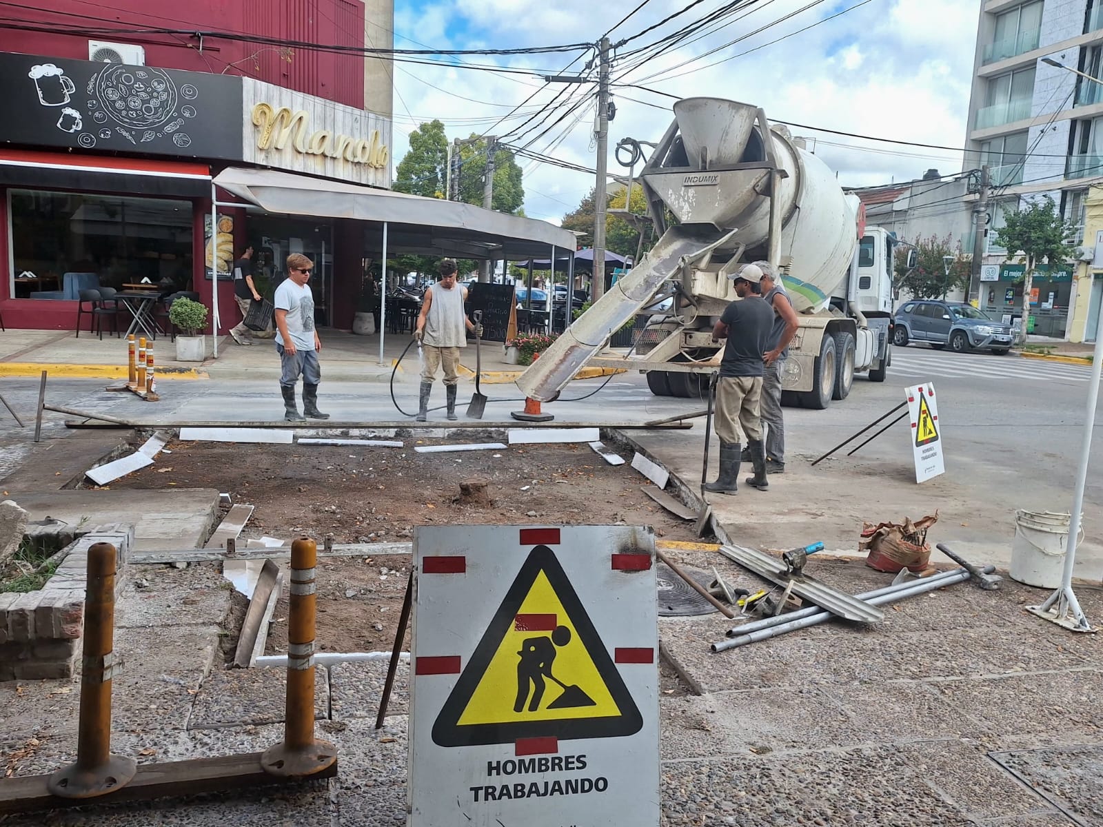 En la misma, se procedió en la mañana de hoy a la colocación de hormigón en los paños restantes de la esquina, donde ya se había realizado el reemplazo de uno de los sectores semanas atrás, ya que presentaba deterioro y elevaciones que impedían la normal circulación.